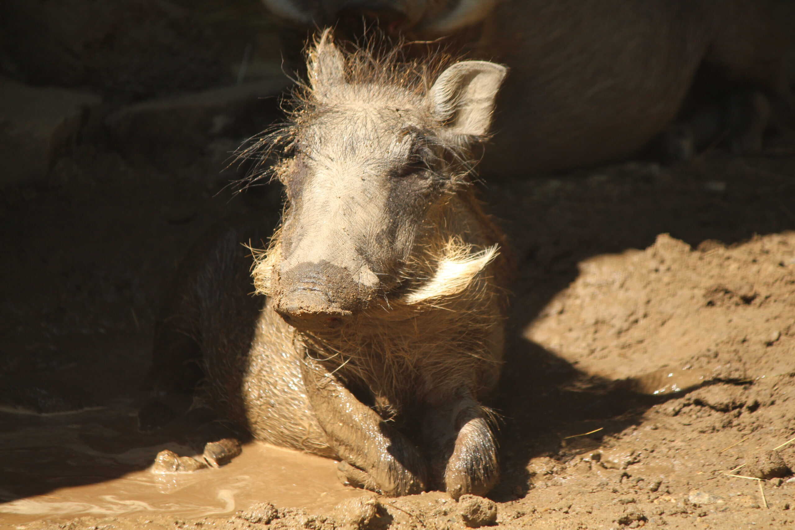 Warthogs can go long periods without drinking water, but will seek it out to wallow. This allows them to cool off as well as to deter bothersome insects.